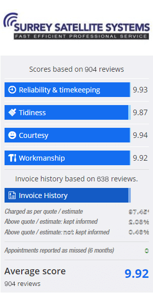 Discover what our satisfied customers across Surrey say about our professional aerial and satellite installation services. We are proud to deliver reliable workmanship, excellent customer care and trusted results every time.